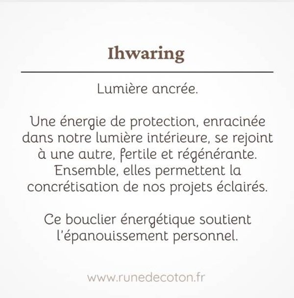 Cette carte carrée (7 cm), au format passe-partout, est imprimée sur un papier épais de qualité pour une tenue durable et agréable au toucher. Elle porte les vibrations des runes IHWAR (force intérieure, enracinement) et ING (transformation, énergie vitale).